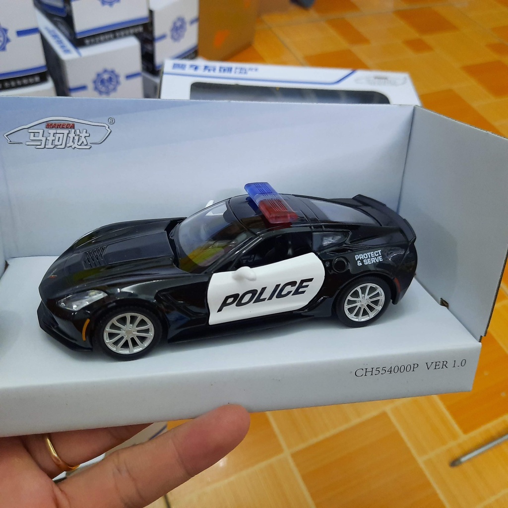 Giới thiệu Đồ chơi mô hình xe ô tô cảnh sát Chevrolet Covetter Grand Sport 1:36