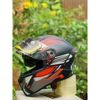 Nón bảo hiểm Fullface M266 2 kính màu đen đỏ siêu đẹp