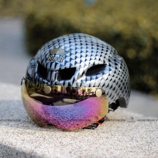Nón xe đạp Royal MD16 MD-16 mũ thể thao chính hãng cao cấp đen nhám mờ bóng titan cacbon carbon POC 01 P01 có kính hit