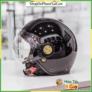 Mũ bảo hiểm Bulldog POM đen bóng kính lửng