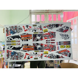 Trọn bộ tem rời Satria Fi trắng đen 3 lớp ko bay màu