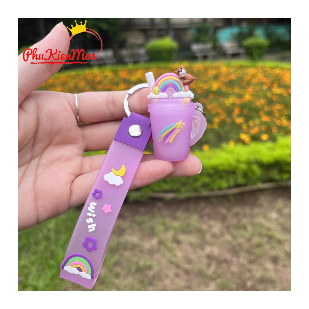 Giới thiệu Móc chìa khoá hình trà sữa mini cầu vồng loại cao su cao cấp PhuKienMoe handmade, ibx để chọn màu