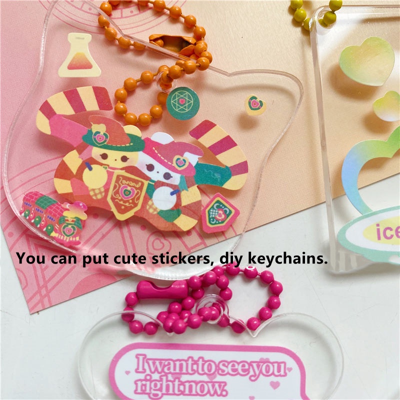 🌈Product Details 🌹Category:DIY Keychain 🌹Material: plastic 🌹size:About 5cm 🌹Package:DIY Keychain*1 Note: There are protective films on both sides, which can be used after they are torn off. The product is blank when received, and you need to DIY by yourself.