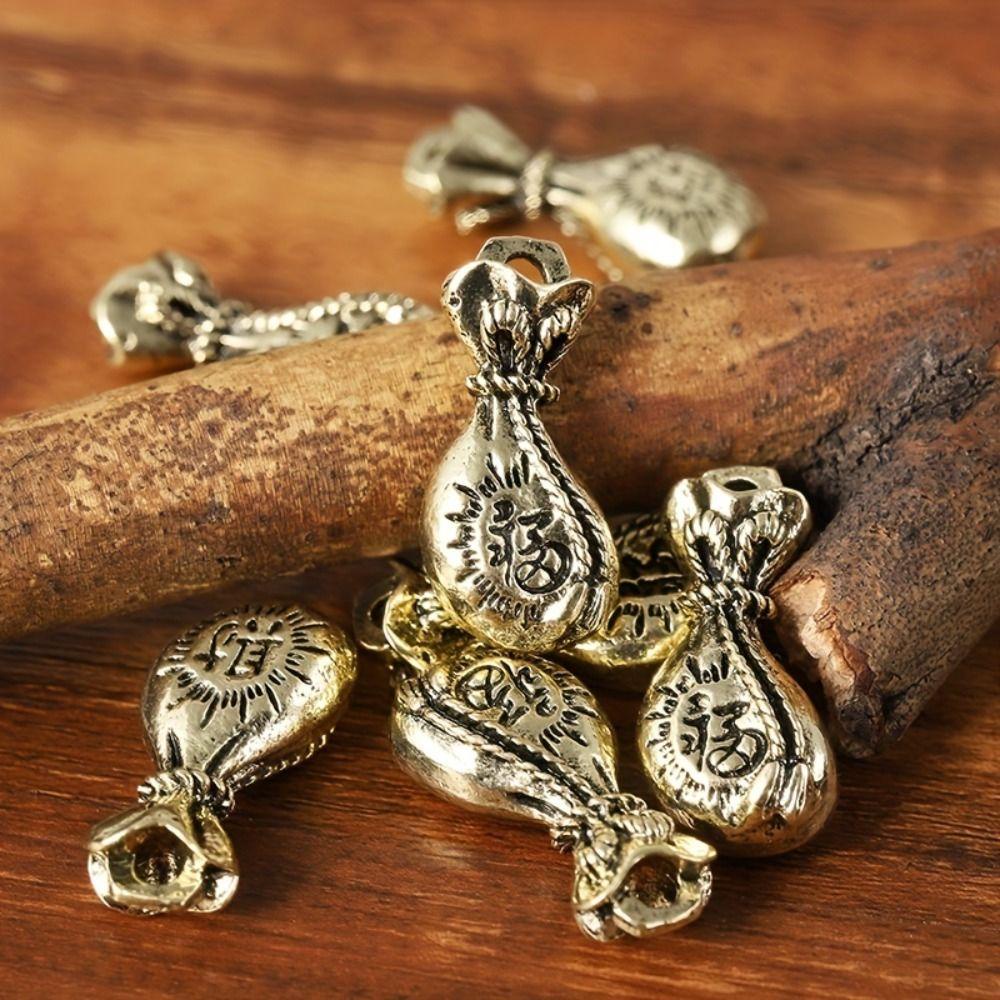 ◆ Phạm vi ứng dụng - trang trí , kỷ niệm , sưu tập. kinh doanh , quà tặng , v.v . Túi may mắn Túi tiền Móc khóa Mặt dây chuyền Túi phước lành Mặt dây chuyền xe hơi Làm bằng tay hai mặt Giả đồng thau Hợp kim rắn Chất lượng cao Retro Tinh tế Cá tính Sáng tạo 3 cái