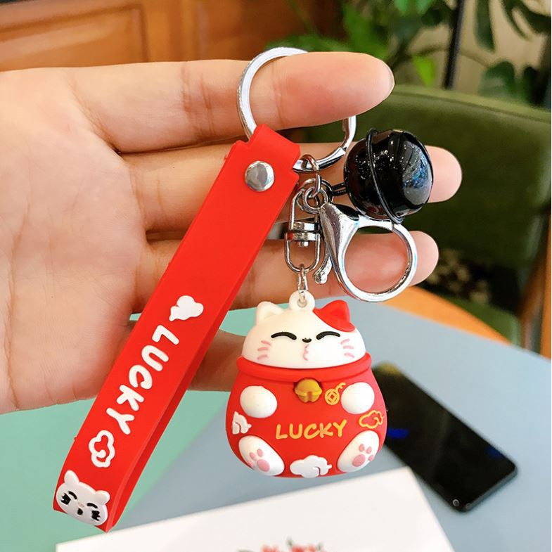 ★Móc khóa mèo thần tài Lucky kèm chuông dễ thương, nhiều màu sắc Ráp dùng làm quà tặng, móc treo ví, túi xách, balo