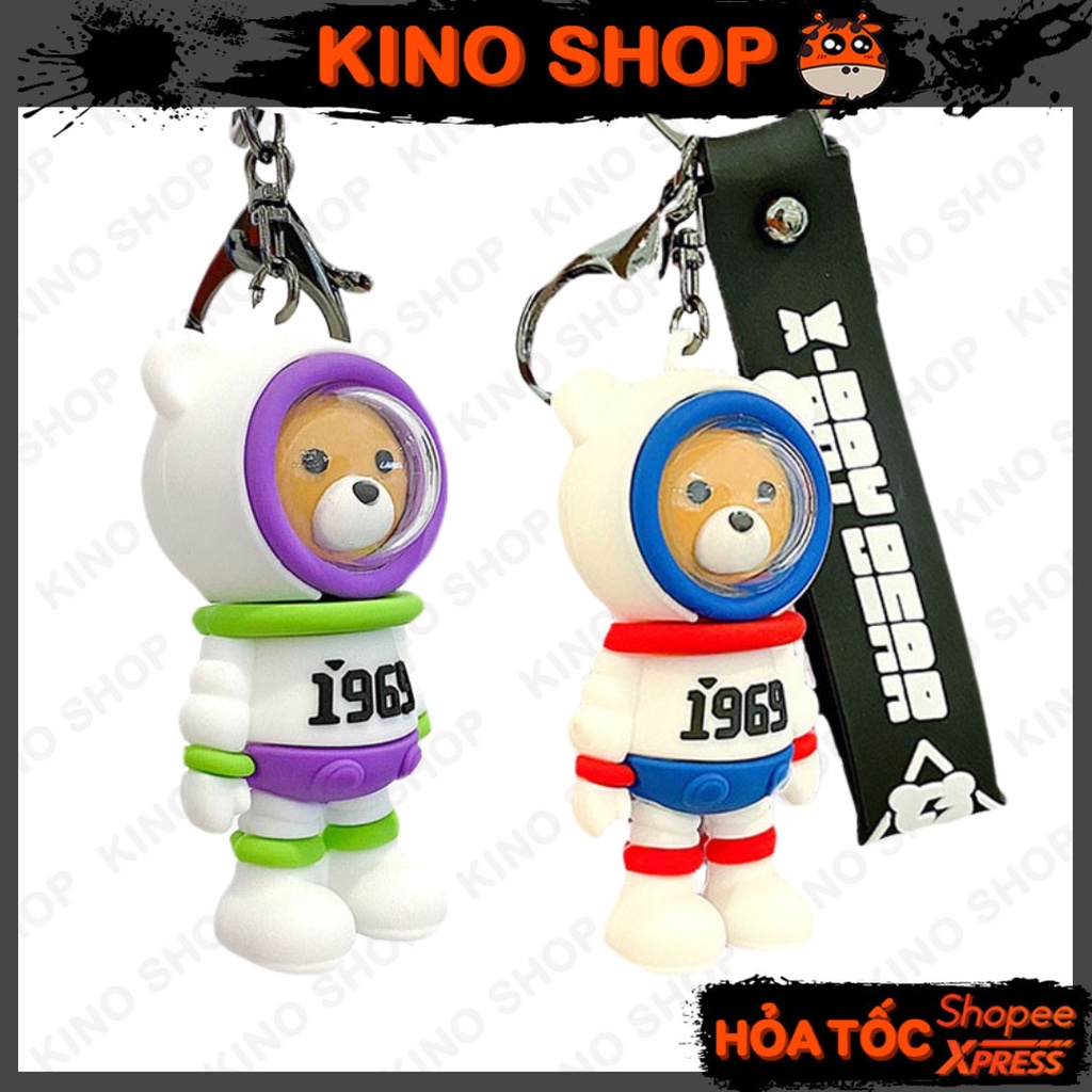 Giới thiệu Móc khoá silicon gấu phi hành gia vũ trụ unisex độc đáo cá tính đeo balo túi xách kèm dây đeo tay Kino Shop
