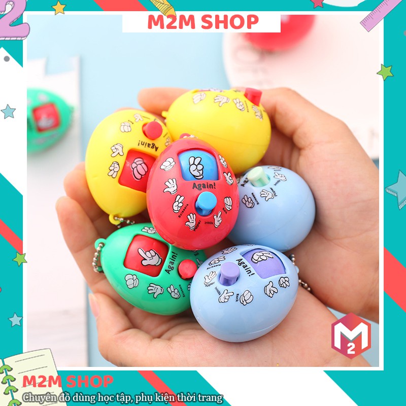 Móc khóa trứng oẳn tù tì nhiều sắc màu - Là chiếc móc khóa có hình quả trứng, ở giữa quả trúng có phần nút bấm và hiển thị oẳn tù tì, mỗi lần nhấn nút bấm, oẳn tù tì sẽ hiển thị: kéo, búa hoặc bao. - Kích thước: 3,5cm x 4cm. Cân nặng: 30gram. - Máu sắc: tím, hồng, xanh da trời, xanh lá cây. - Chất liệu: nhựa cứng, phần móc làm bằng chất liệu inox chống gỉ. - Có thể làm trò chơi cho các bạn trẻ thích oẳn tù tì. - Ngoài ra, shop mình còn bán rất nhiều loại móc khóa khác, các bạn có thể ghé qua shop mình tham khảo thêm nhé.