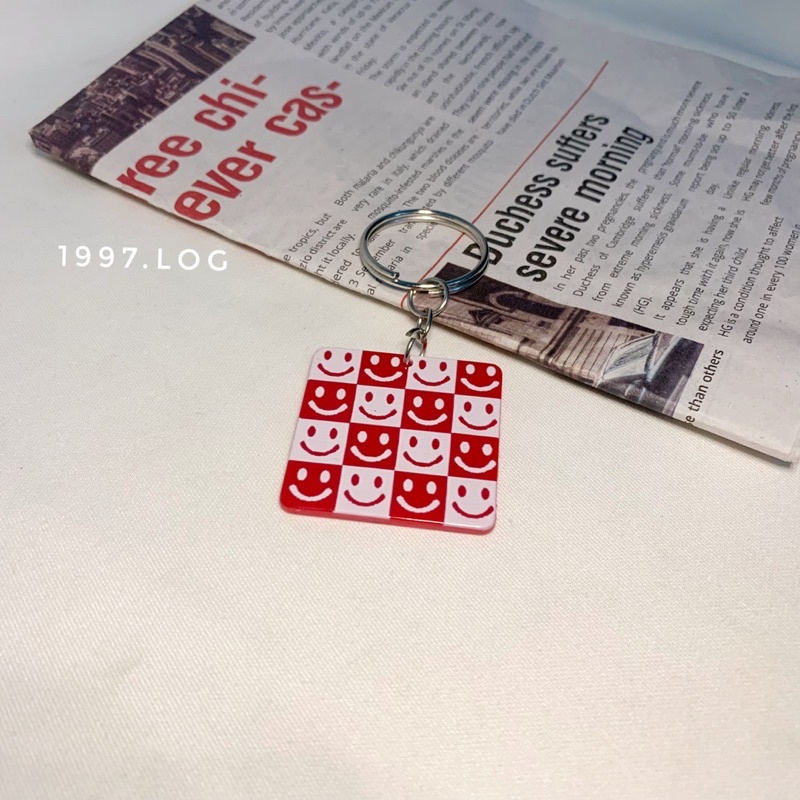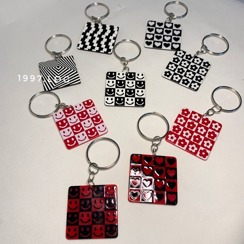 Móc khoá vuông caro Hoa/ Mặt cười/ Tim đơn giản Chất liệu: nhựa