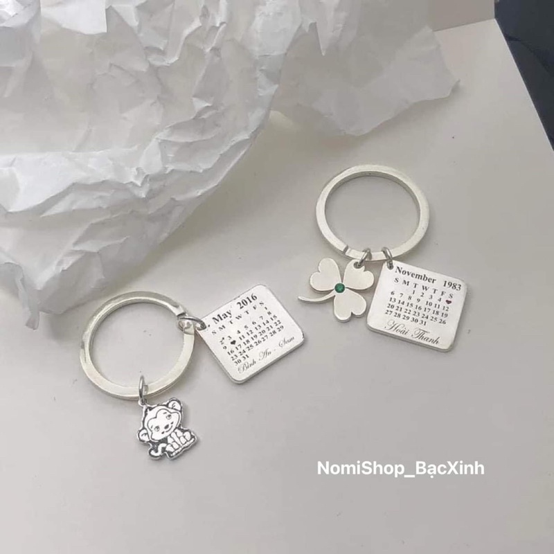 Giới thiệu Móc treo chìa khoá chuẩn bằng bạc ta, khắc tên khắc lịch ngày sinh theo yêu cầu Mainomi Shop Bạc Xinh