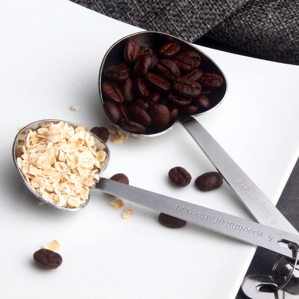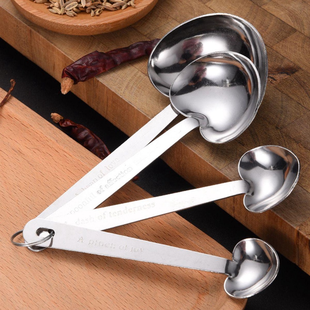 An toàn khi sử dụng trong máy rửa chén . Bộ thìa đo lường Cốc đo lường Dụng cụ làm bánh bằng thép không gỉ Hình trái tim đám cưới Sinh nhật Tiệc nhà bếp Nấu cà phê Trà 4 cái