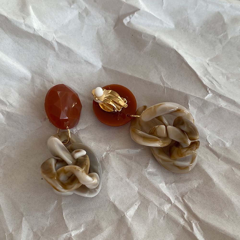 Chất liệu nhựa Màu be. nâu Kích thước × 5,6 *2 cm Giới tính Nữ Đóng gói ' 1 đôi bông tai Bông tai nguy hiểm Kẹp tai Đồ trang sức thời trang Chuỗi Acrylic Hit Màu hình học Phụ nữ Hàn Quốc Cô gái phóng đại Tính cách cổ điển