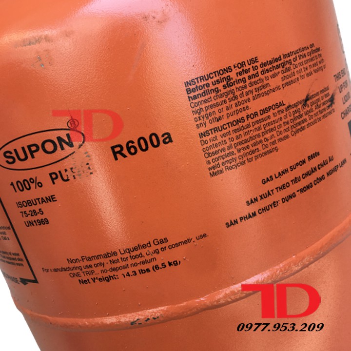 Gas lạnh tủ lạnh R600A 6.5KG SUPON, môi chất lạnh R600A Hotline: 0977.953.209 (Zalo/Viber)