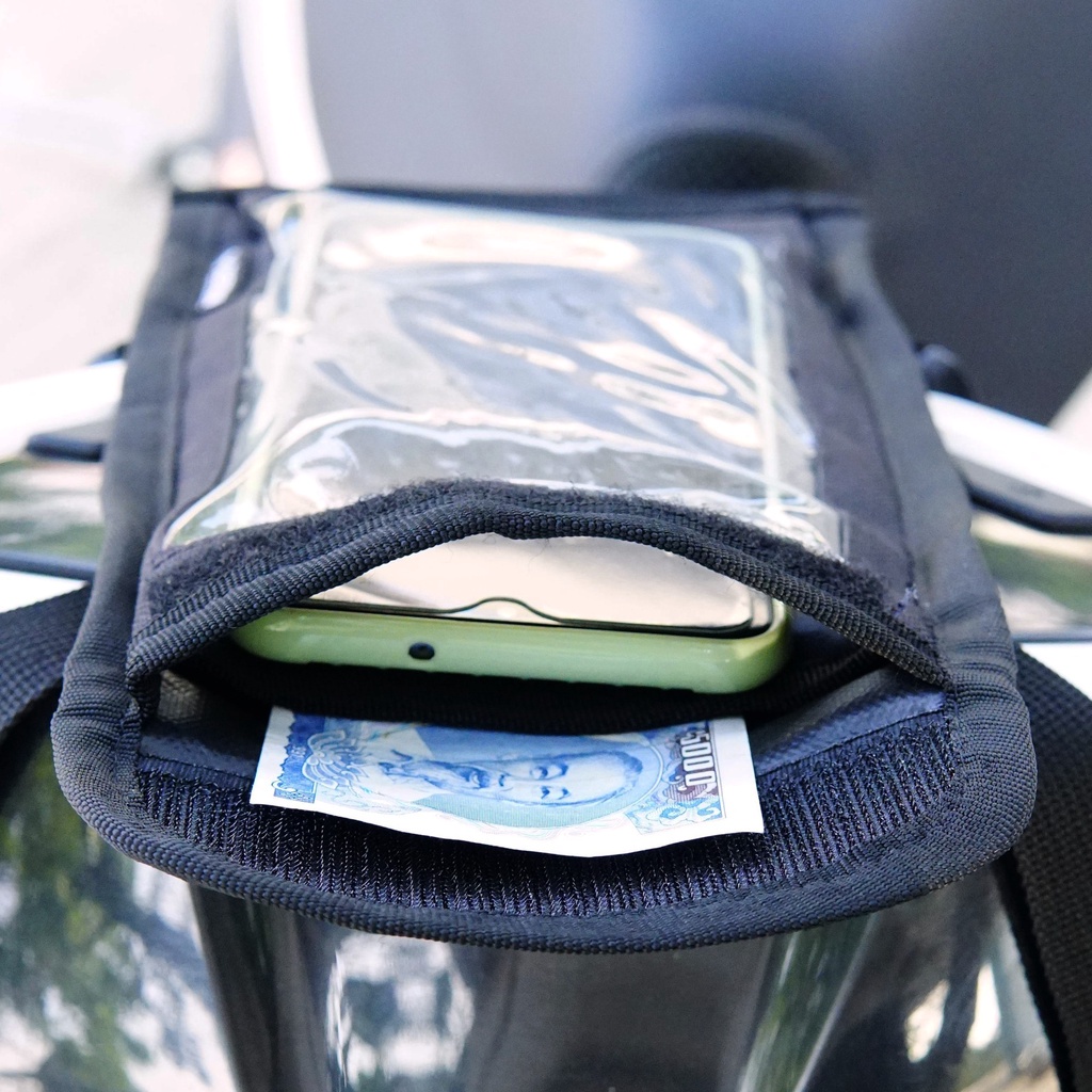 Túi treo đầu xe máy CHIỀU DỌC xem điện thoại, chứa đồ. Đi phượt, chạy Grab. ✔️ Với nhiều ưu điểm vượt trội hơn so với phiên bản cũ ✔️ Màn hình điện thoại để dọc: thuận tiện thao tác khi chạy xe: kể cả nghe gọi và xem google map ✔️ Ngăn chứa đồ lớn hơn, Nhưng vẫn đảm bảo tính nhỏ gọn ✔️ Thiết kế tháo, đóng túi nhanh chóng, dễ dàng ✔️ Đựng được điện thoại, máy ảnh, mắt kính, bao tay, … ✔️ Mặt nhựa dẻo có thể sử dụng được tất cả các loại điện thoại cảm ứng. ✔️ Có lỗ ra 1 bên hông