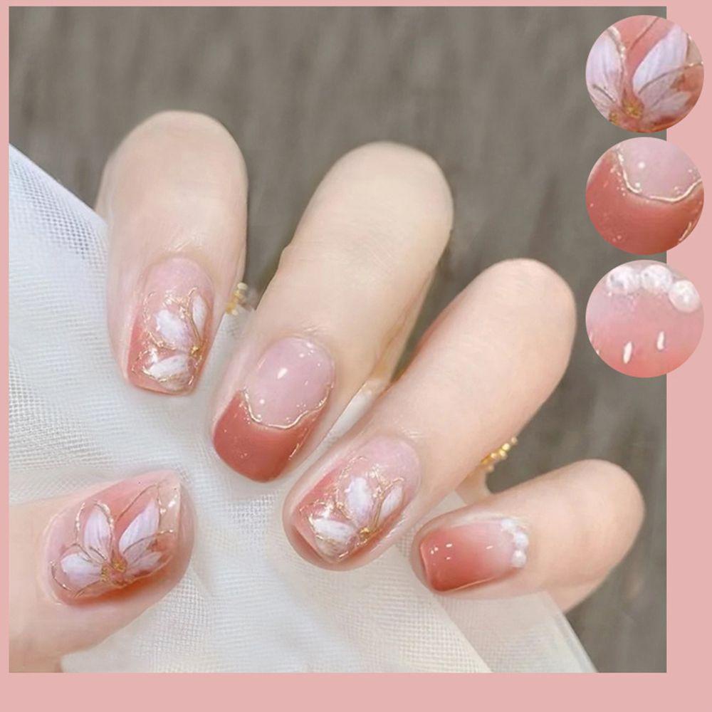 Giới thiệu Bộ Móng Tay Giả Che Phủ Toàn Diện Họa Tiết Hoa Trà Đào Xinh Xắn