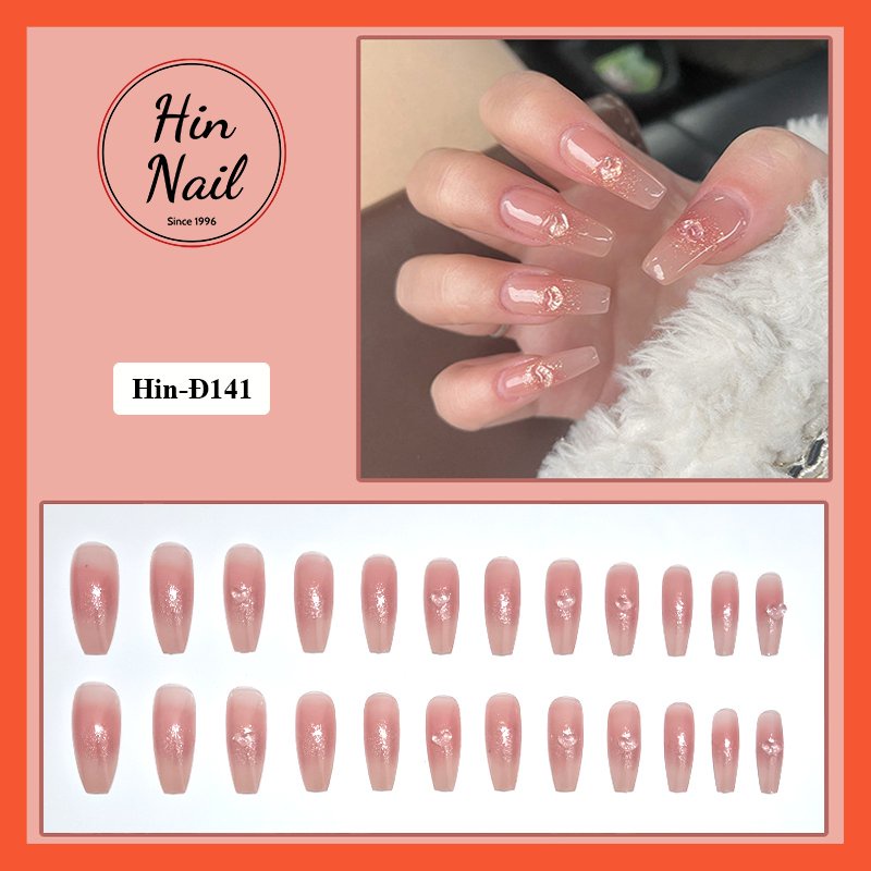 Thể hiện đẳng cấp cùng Hin Nail ------------------------------------------------------------------------ HƯỚNG DẪN SỬ DỤNG 1. Lau sạch bề mặt móng 2. Ướm thử móng giả sao cho vừa móng thật. (nếu móng tay bạn quá nhỏ có thể dùng dũa 2 bên cạnh của móng giả cho vừa với ngón tay của bạn) 3. Dùng keo bôi đều lên móng giả sau đó dán lên móng thật (giữ khoảng 10-15s) LƯU Ý : 1 bộ móng sử dụng được nhiều lần, có thể ngâm nước thoải mái
