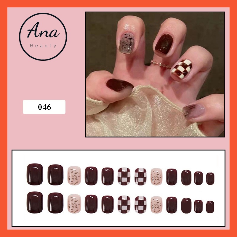 Giới thiệu Móng tay giả họa tiết caro tôn da Anabeauty Mã Ana-046