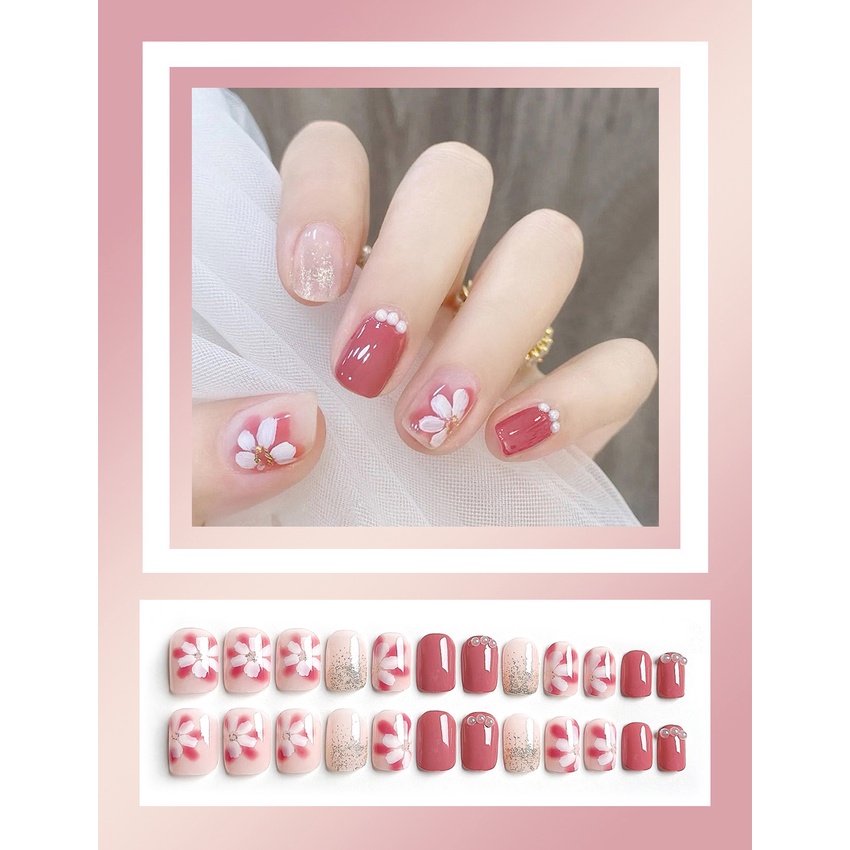 Sắc Đẹp > Dụng cụ & Phụ kiện Làm đẹp > Chăm sóc móng > Móng tay giả vuống thiết kế đính ngọc trai Jojo Y34 móng giả nailbox rẻ thời trang sang chảnh có keo gắn tự làm tại nhà