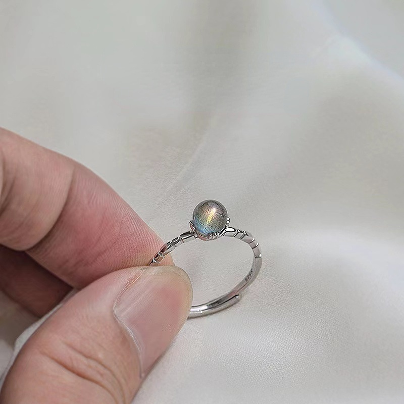 Giới thiệu Moonstone Ring Thiết kế đơn giản Nhẫn thời trang sang trọng Cá tính Nhẫn nữ Mở nhẫn Trang sức