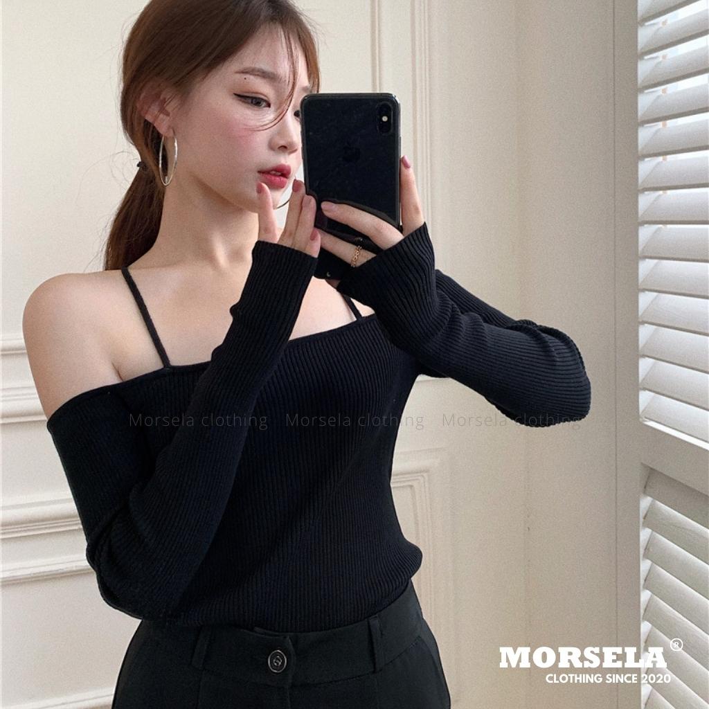 Giới thiệu MORSELA® chính hãng - Áo croptop nữ 2 dây cổ yếm trễ vai ôm body tay dài - Áo yếm bẹt vai