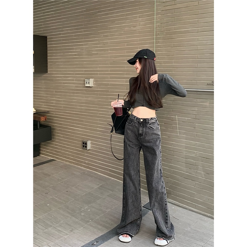 Giới thiệu 「MOTEL7」Quần Jean Dài Lưng Cao Ống Rộng Màu Xám Khói Retro