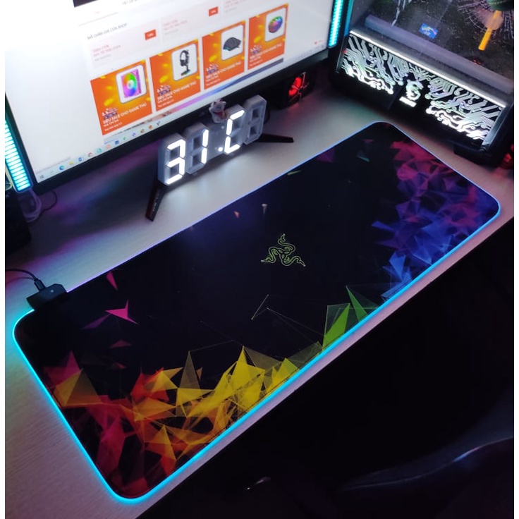 Mouse Pad, Bàn Di Chuột, Lót Đi Chuột Tích Hợp Led RGB Razer Sáng Viền