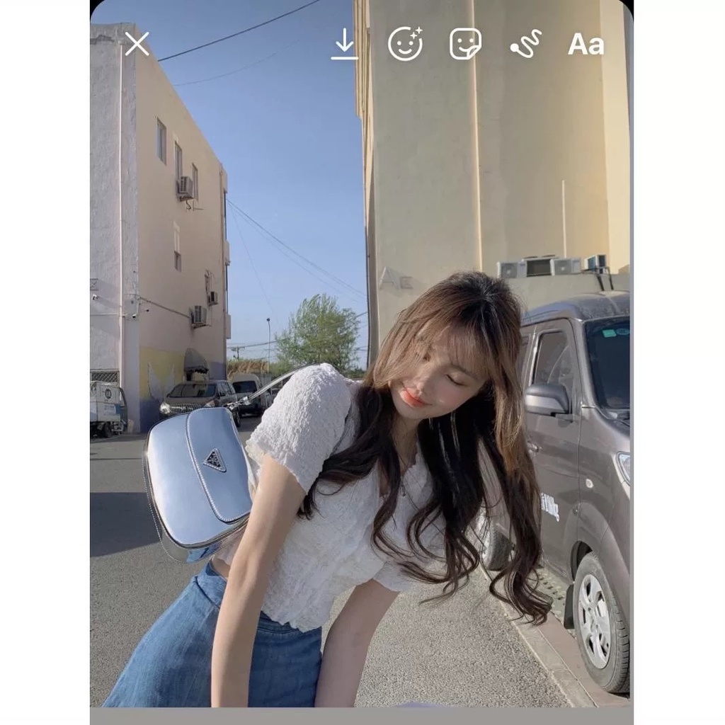 Giới thiệu MS693 Áo kiểu nữ croptop xốp nhăn viền bèo cổ tim
