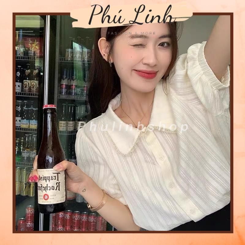 Giới thiệu MS979 Áo sơ mi cộc tay bồng cổ bèo kẻ sọc dễ thương
