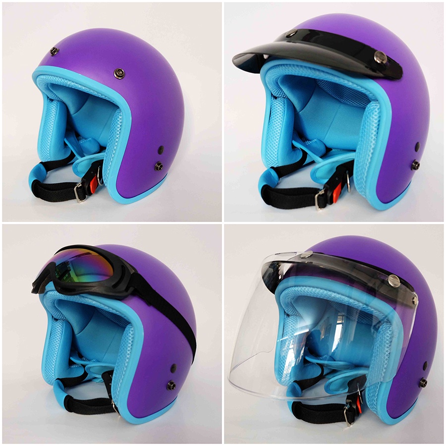 Mũ Bảo Hiểm 3/4 đầu ( MÀU TÍM ) Lót 7 Màu Cao Cấp Như Hình - Hàng CTY-Cam Kết Chất Lượng Giống Hình 100%