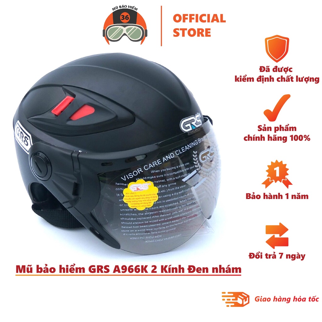 Mũ Bảo Hiểm GRS 966K 2 Kính Thông số kĩ thuật: - Kiểu: A966K 2 kính - Nhãn hiệu: GRS - Xuất xứ: Việt Nam - Kích cỡ: 56-59cm - Trọng lượng: 850g - Vật liệu: Nhựa ABS