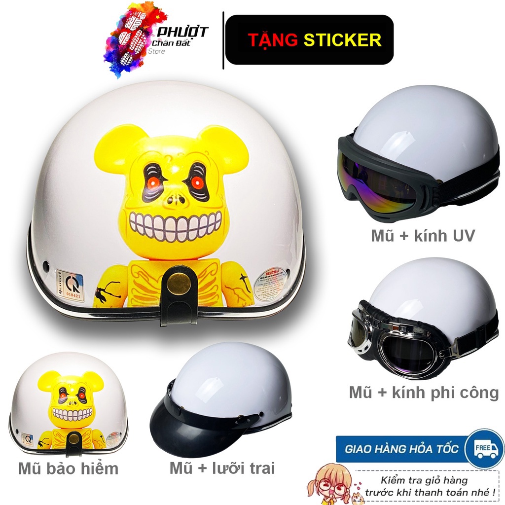 Giới thiệu Mũ Bảo Hiểm Nửa Đầu 1/2 tem BearBrick Trắng 1 có kính Siêu HOT - Hàng Cao Cấp