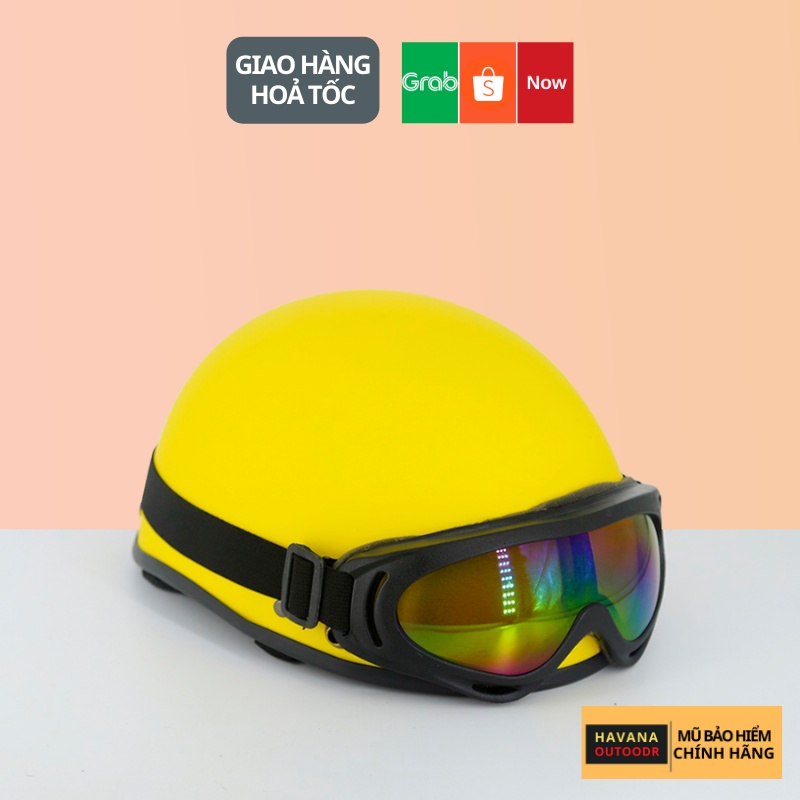 Ô Tô & Xe Máy & Xe Đạp > Mũ bảo hiểm > Mũ bảo hiểm nửa đầu > Mũ Bảo Hiểm Nửa Đầu 1/2 Vàng Trơn Lót Đệm Cao Cấp Chính Hãng Havana Store Kèm Kính Phi Công - BH 12 Tháng