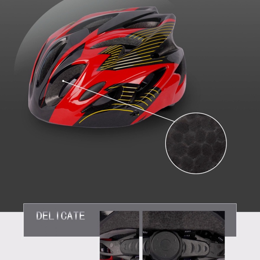 Miêu tả sản phẩm Mũ bảo hiểm xe đạp thể thao siêu nhẹ: Chất liệu siêu nhẹ, kiểu dáng thời trang và đẹp mắt, tạo cảm giác thoải mái khi đội. Lớp đệm lót êm ái có thể chống sốc hiệu quả. Các lỗ thông hơi có thể cải thiện luồng không khí bên trong mũ bảo hiểm. Với bộ điều chỉnh bên trong có thể xoay để điều chỉnh, điều chỉnh kích thước chu vi đầu linh hoạt.