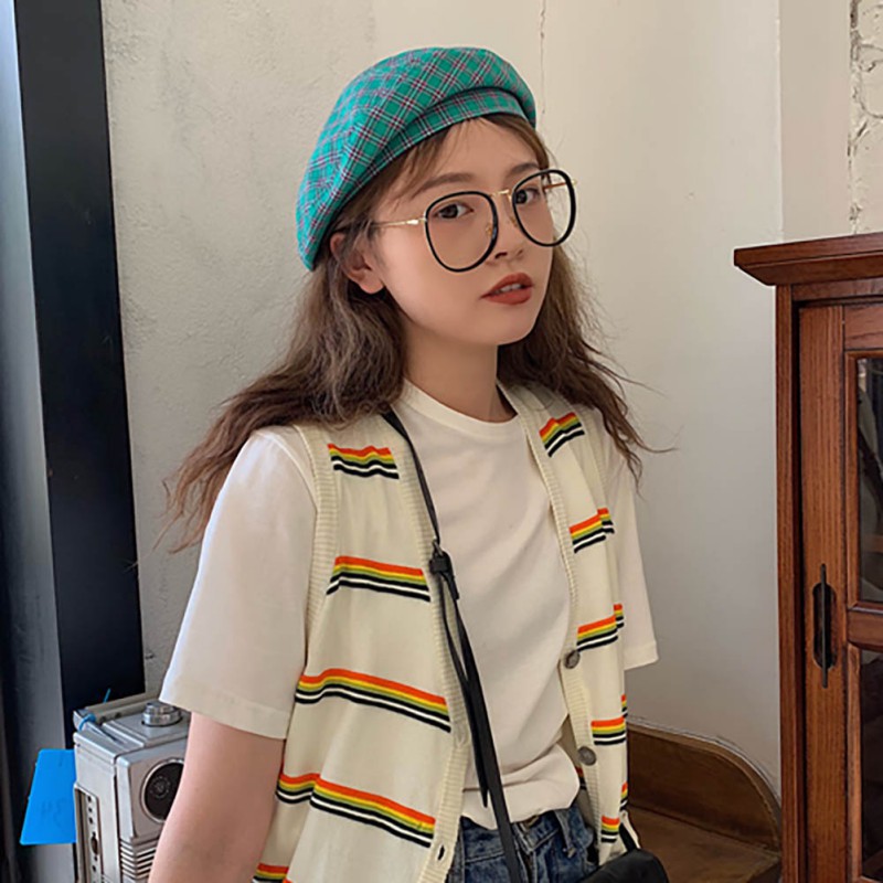 Giới thiệu Mũ beret họa tiết ca rô phong cách Hàn Quốc đơn giản xinh xắn dành cho nữ