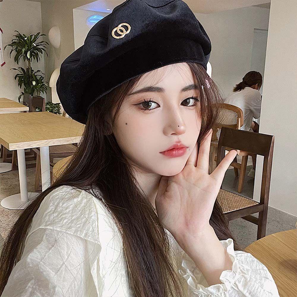 Đóng gói: 1 chiếc mũ Mũ nồi nhung Phong cách Hàn Quốc Phụ nữ Mũ lưỡi trai hình bát giác Mũ lưỡi trai Vòng tròn Phong cách Anh Mùa thu Đông Phù hợp với cô gái Retro Ngọt ngào Ấm áp Đơn giản Cổ điển