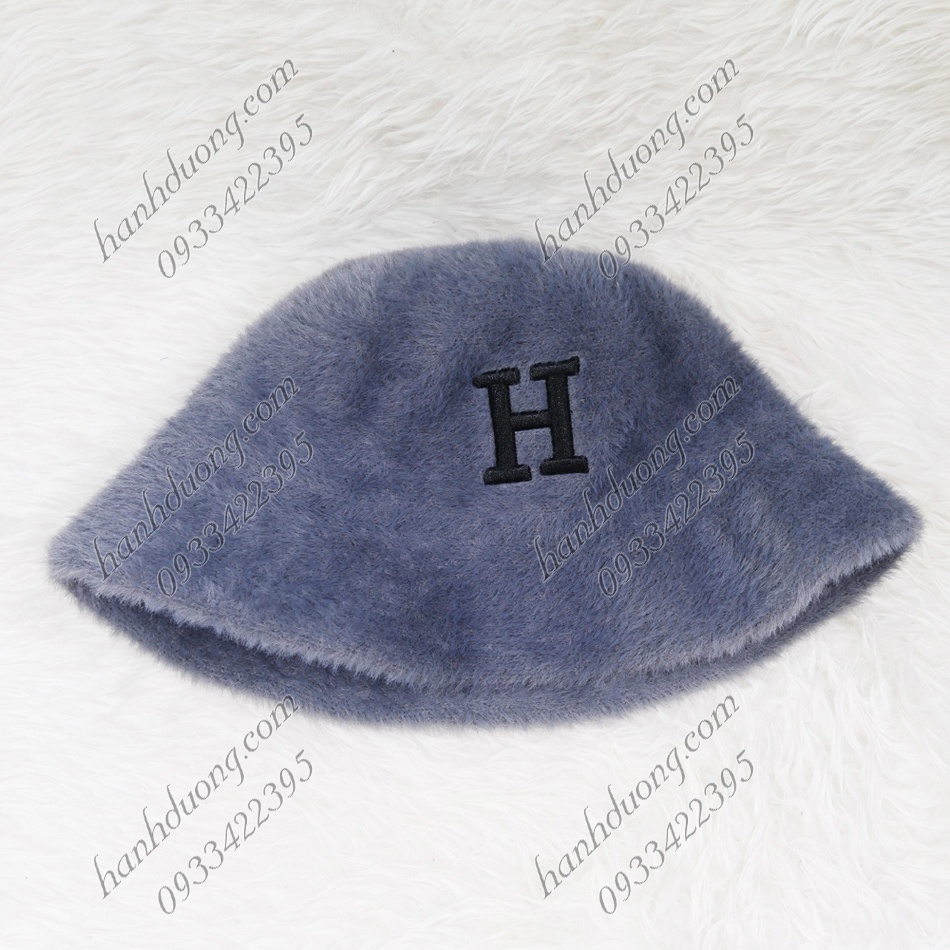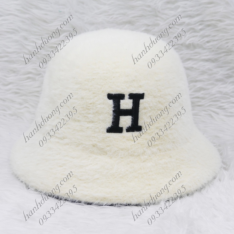 Giới thiệu Mũ bo cụp lông xù mũ bucket vành tròn hàng quảng châu thêu chữ H, vành rộng 5cm, phía trong có 2 dây rút