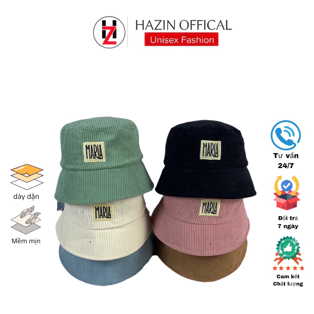Giới thiệu Mũ bucket HAZIN thêu chữ Maria vành nón cụp nhung nhiều màu phong cách Unisex phù hợp cả nam nữ