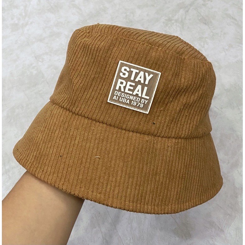Giới thiệu Mũ bucket vành cụp hoạ tiết chữ Stay Real Nón tai bèo thêu chữ chất nhung tăm cao cấp form unisex nam nữ