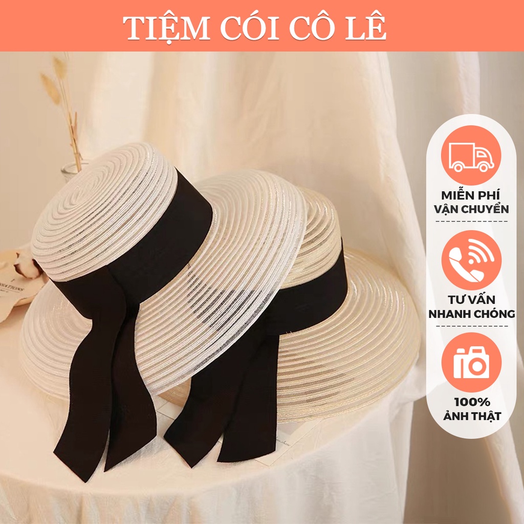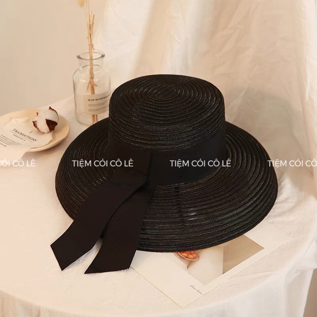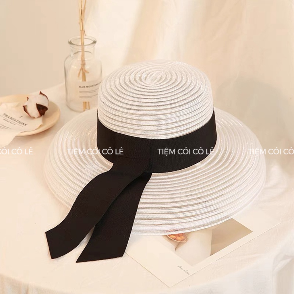 Giới thiệu Mũ cói chuông form nhỏ dạng lưới phối đai nơ bản rộng đi biển, chụp ảnh - Tiệm Cói Cô Lê