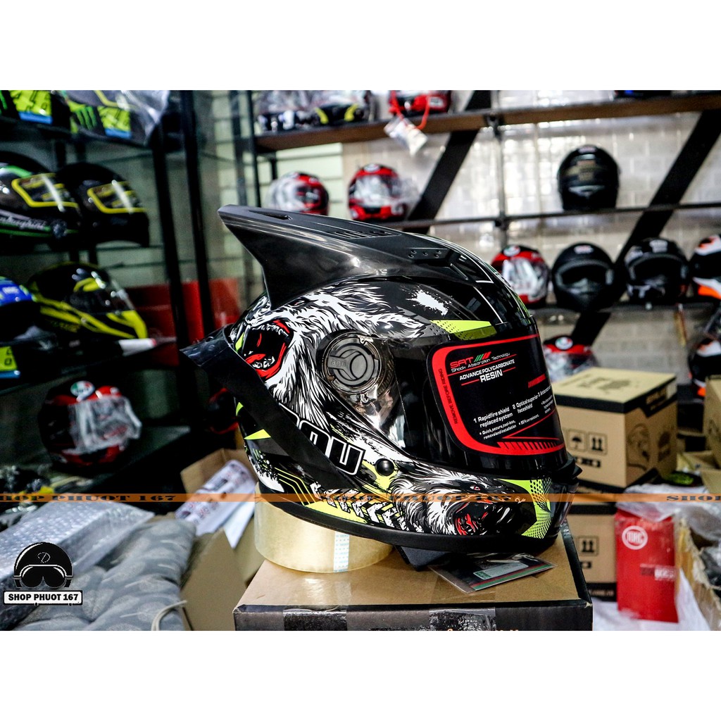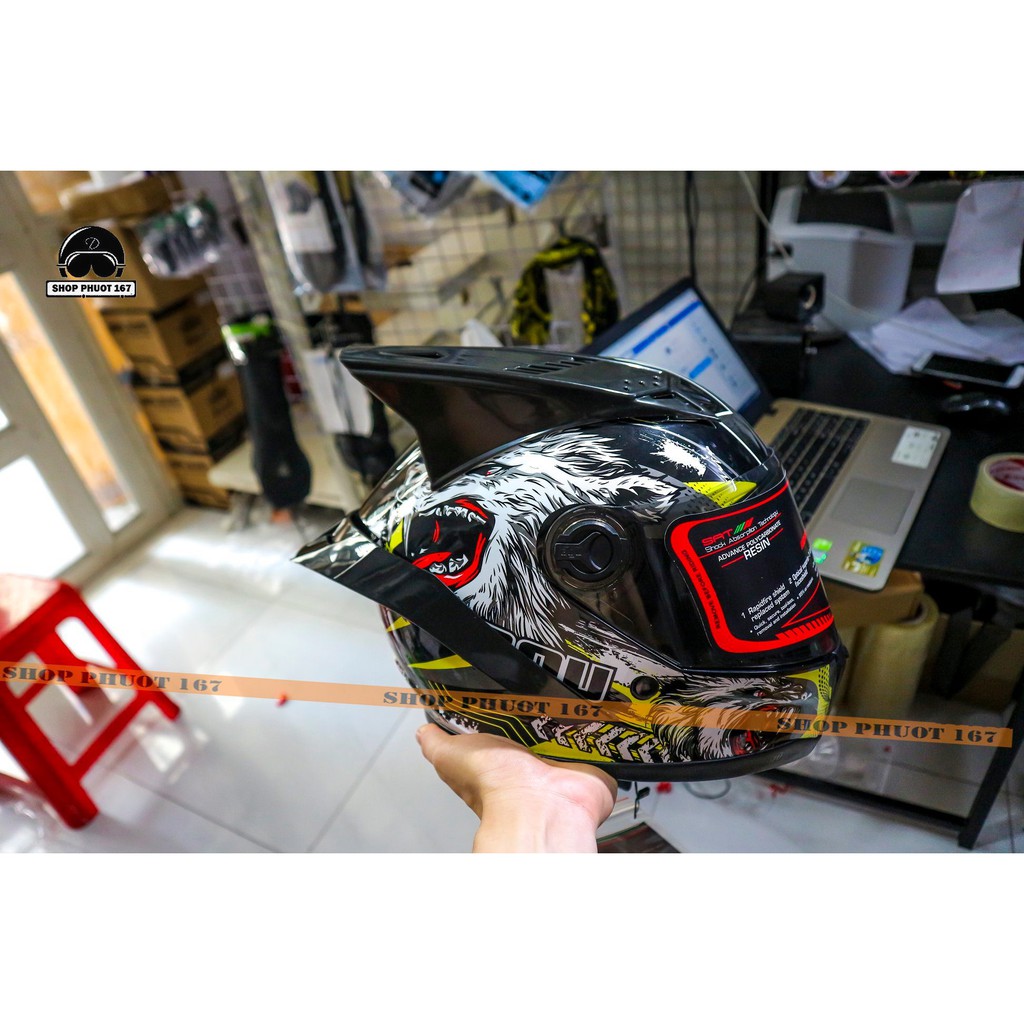 Giới thiệu Mũ Fullface AGU Tem Ma Sói lên đuôi gió và tai rùa, tặng túi đựng nón