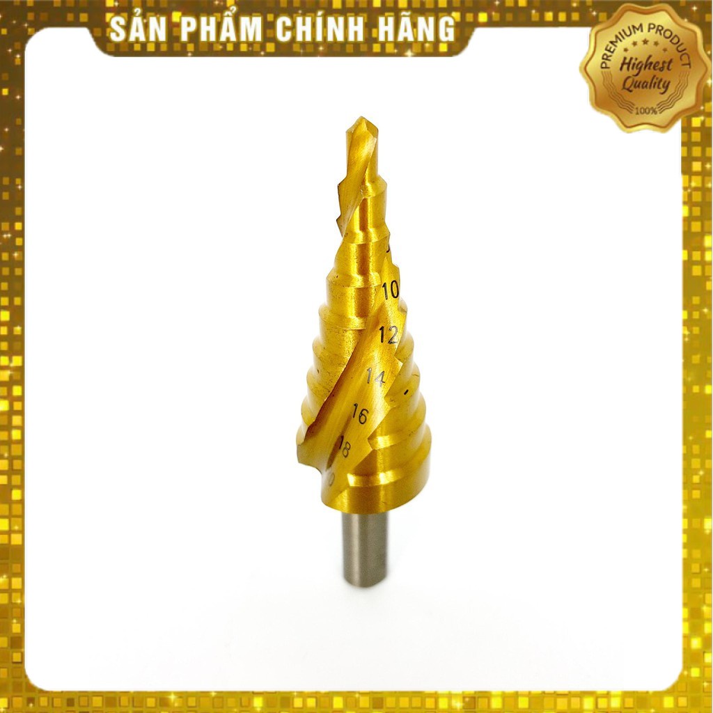 Một mũi khoan tao ra các đường kính khác nhau từ 4 đến 20mm Vật liệu thép gió HSS phủ Titanium gia cường, giảm nhiệt ma sát Các bước khoan được đánh số đường kính tiện dụng Mũi khoan tháp bước XOẮN Mũi khoan tháp bước xoắn là một dạng của mũi khoan tháp, khác với mũi khoan tháp bước chéo, Có khả năng tạo đường kính lỗ chính xác theo kích thước đặt trước, cụ thể, mũi khoan tháp có các cỡ đường kính 4, 6,8,10,12,16,18,20mm. Mũi khoan tháp bước XOẮN có khả năng khoan được các vật liệu cứng và dày khi khoan ở chế độ khoan búa. Vật liệu khoan được phong phú từ gỗ, nhựa, nhôm, đồng, sắt đến inox Chuôi lục giác H1/4 phù hợp với rất nhiều loại máy khoan phổ biến các đường kính bước khoan ghi rõ tại mỗi bước khoan giúp bạn khoan đến đường kính cần thiết Kích thước sản phẩm 53 mm x 20 mm x 22 mm Đường kính các bước khoan: 4,6,8,10,12,16,18,20mm Vật liệu lõi : Thép gió HSS mũi phủ titanium Số lưỡi cắt đồng thời: 2 Công dụng: Khoan tạo lỗ, khoan phá Bộ sản phẩm bao gồm: 1 MŨI Màu: Vàng Đường kính mũi khoan: 4 – 20 mm Độ cứng: 6.5 Dạng bước: xoắn Hướng cắt : cắt về phía phải Xuất xứ : Trung Quốc SẢN PHẨM NHƯ HÌNH THẬT.