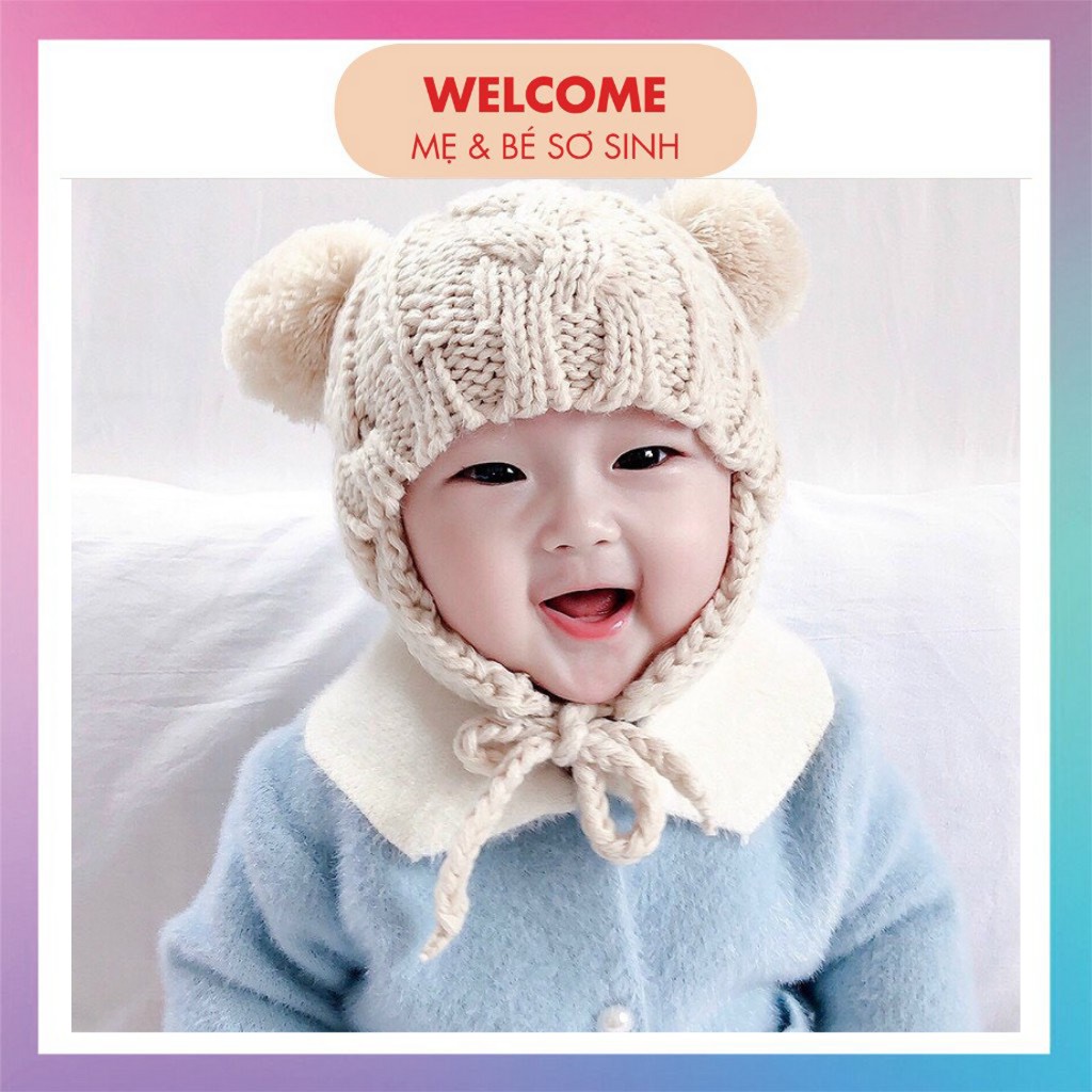 🌸 MŨ LEN GẤU QUẢ BÔNG CÓ DÂY BUỘC CHO BÉ 🌸