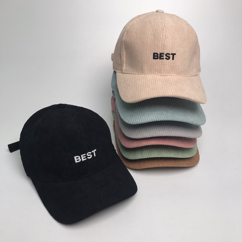 ❤️ THÔNG TIN SẢN PHẨM : Mũ lưỡi trai thêu chữ BEST - MÀU SẮC: Nhiều màu sắc thời trang - Chu vi nón: 56-58cm, có thể điều chỉnh kích cỡ với khóa kéo sau chắc chắn - Chất liệu: Nhung tăm cao cấp, dày mịn, thoáng mát - Phương pháp dệt: dệt trơn, có thêu chữ và hoa văn - Sản xuất: Xưởng SX và Gia Công Nón Mũ Theo Yêu Cầu Maprick