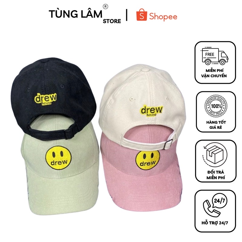 Giới thiệu Mũ lưỡi trai , Nón kết thêu hình mặt cười DREW , thời trang nam nữ freesize