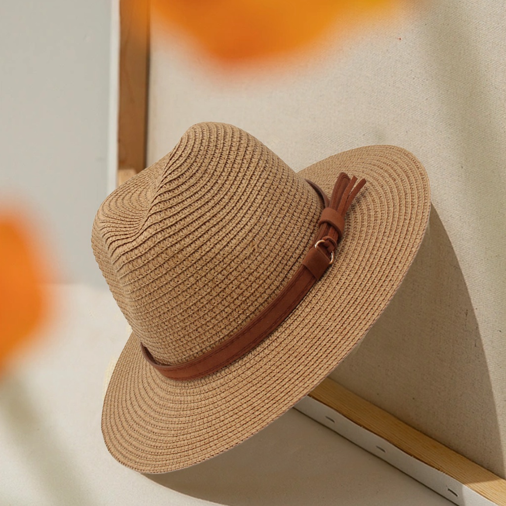 Các tính năng: Dệt rơm, Vành rộng, Trang trí da giả