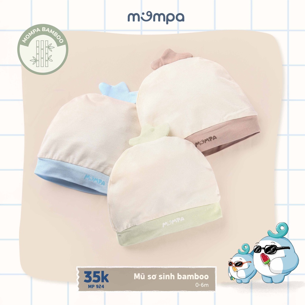 Giới thiệu Mũ sơ sinh sơ sinh Mompa cho bé từ 0-6M - Chất vải Bamboo 3 màu MP924