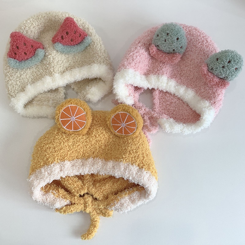 Giới thiệu Mũ trùm đầu dệt kim giữ ấm tai hình trái cây dễ thương cho bé
