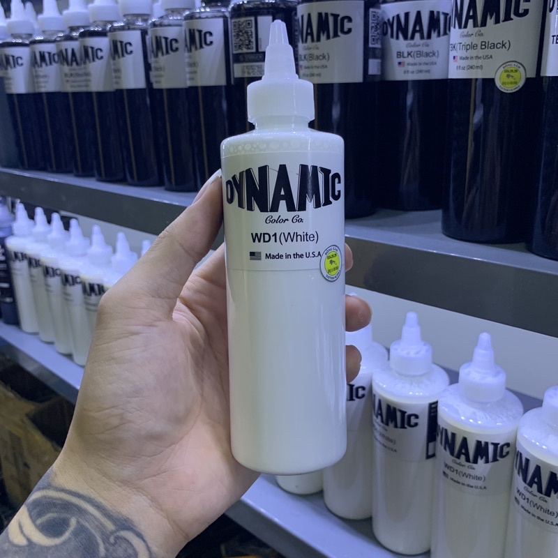 Là sản phầm mực màu trắng của thương hiệu Dynamic được đông đảo tattoo artist toàn thế giới tin dùng do chất mực đặc trưng của dynamic là hạt mực nhỏ và là dòng mực dầu. Nên thao tác khi sử dụng dễ dàng và dễ ngấm vào da. Cho bề mặt hình xăm bóng mịn đều. Không vón cục sản phẩm thích hợp cho pha màu hoặc sử dụng đánh trực tiếp các mảng trắng hoặc nhấn trắng