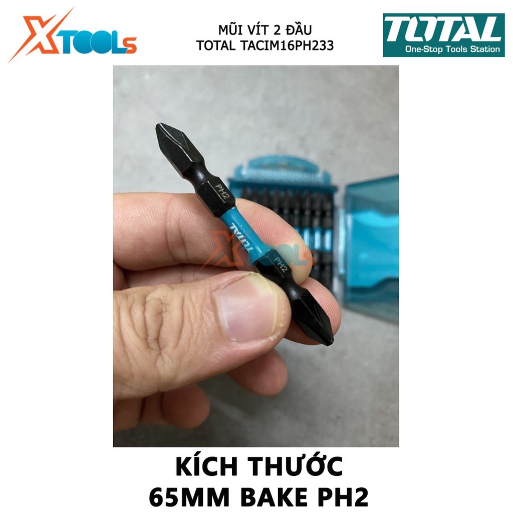 Dụng cụ và thiết bị tiện ích > Dụng cụ cầm tay > Máy khoan, máy vặn vít & phụ kiện > Bộ mũi bắt vít 2 đầu có từ TOTAL TACIM16PH233 | bộ 10 mũi siết vít PH2+PH2x65mm thép công nghiệp S2 [CHÍNH HÃNG][XTOOLs]