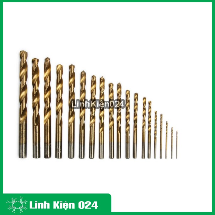 Bộ Mũi KHoan 19 Mũi Vàng Cao Cấp Từ 1mm - 10mm Bộ 19 mũi khoan được bảo quản trong hộp nhựa chắc chắn. Kích thước mũi khoan từ 1mm - 10mm nên khoan hầu hết được các loại sắt, thép, gỗ, kim loại với thiết kế đuôi tròn giúp việc thay mũi khoan nhanh hơn. 19 mũi khoan được phủ lớp coban tăng cường độ cứng là bộ dụng cụ khoan vô cùng tiện dụng, có chất lượng tốt giúp gia tăng tốc độ làm việc, tiết kiệm thời gian. Khoan sắt, thép và gỗ đây chắc chắn chính là bộ đồ nghề chuyên nghiệp cho các bác thợ. bộ mũi khoan Thông số kĩ thuật của bộ mũi khoan Chất liệu mũi: Hợp kim cao cấp Kích thước hộp đựng: 16 x 14 x 2cm Đuôi tròn Kích thước các loại mũi khoan: Mũi 1mm, dài 3.4cm Mũi 1.5mm, dài 4cm Mũi 2mm, dài 5cm Mũi 2.5mm, dài 5.6 cm Mũi 3mm, dài 6cm Mũi 3.5mm, dài 6,6 cm Mũi 4mm, dài 7.7cm Mũi 4.5mm, dài 8cm Mũi 5mm, dài 8,5cm Mũi 5.5mm, dài 9cm Mũi 6mm, dài 9.5cm Mũi 6.5mm, dài 10cm Mũi 7mm, dài 10.5cm Mũi 7.5mm, dài 11cm Mũi 8mm, dài 11.5cm Mũi 8.5mm, dài 12 cm Mũi 9mm, dài 12.5cm Mũi 9.5mm, dài 13cm Mũi 10mm, dài 13.5cm