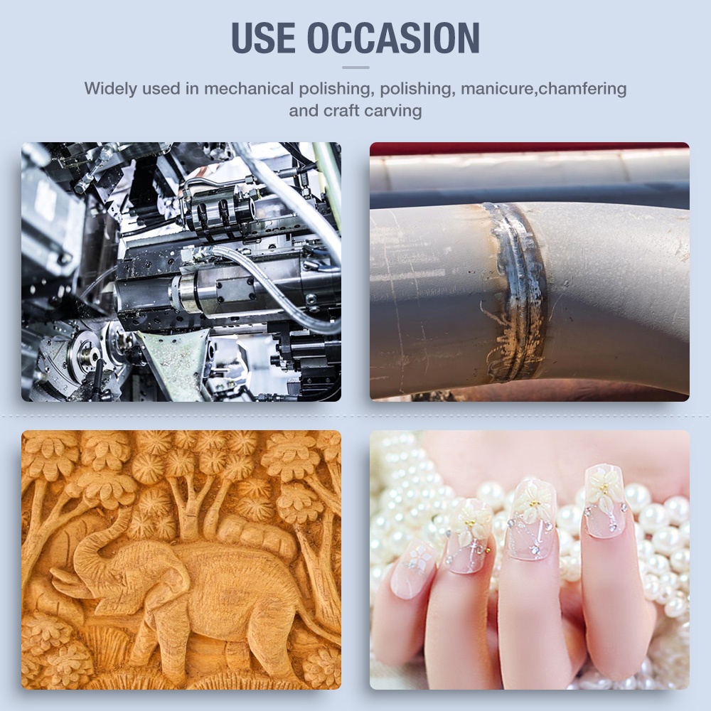 Hiệu quả cao Không tản nhiệt Khả năng chống mài mòn tối đa Lớp phủ Nano đảm bảo tuổi thọ cao cho phần Có thể giặt, khử trùng và khử trùng. Máy khoan gốm, lý tưởng để điêu khắc, định hình, san phẳng, đánh bóng và loại bỏ mô hình trên móng tay nhân tạo. Hiệu quả cao, tạo ít bụi hơn và ít ma sát, nhiệt tối thiểu